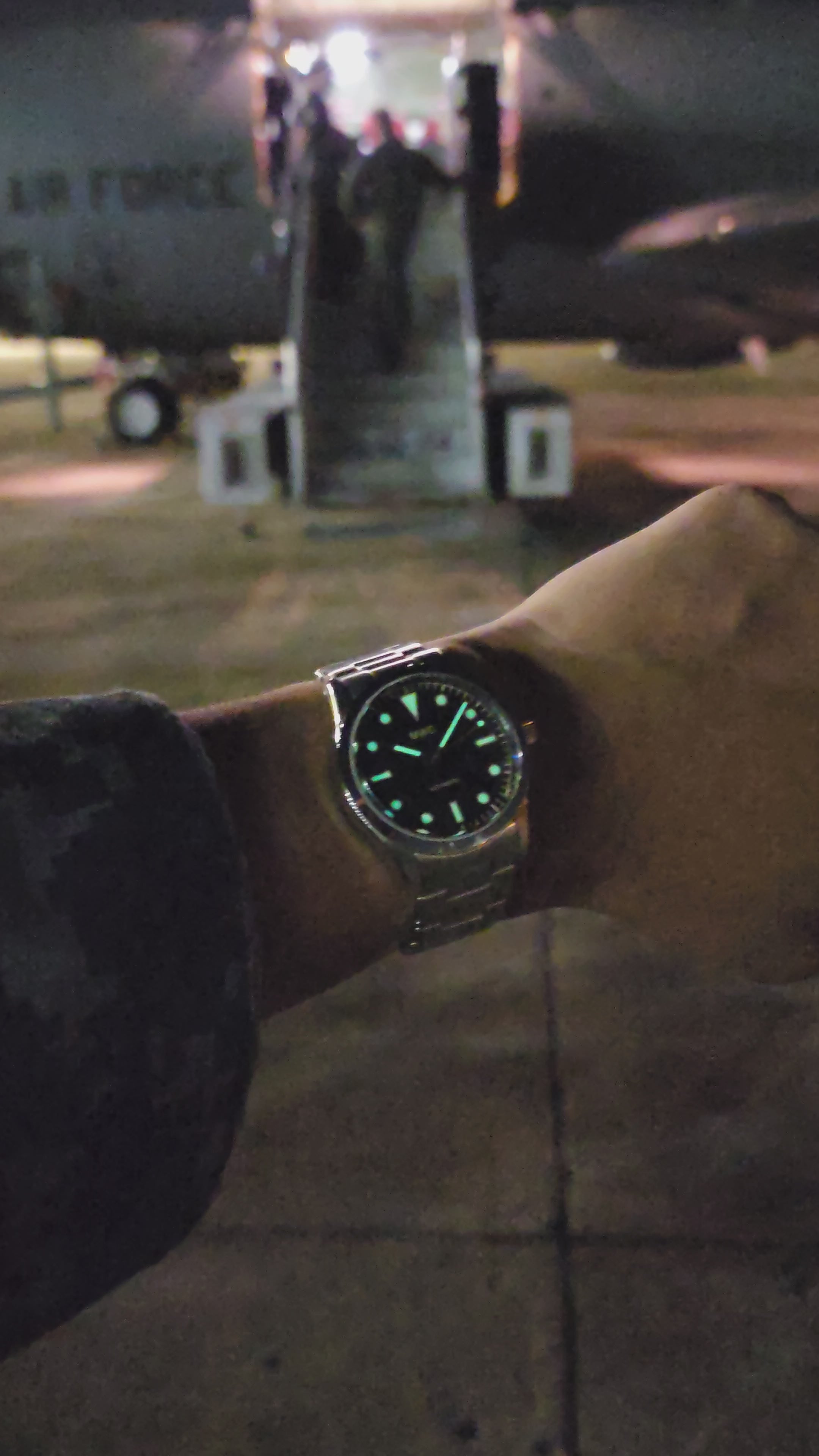 The watch measures 39mm in diameter and comes fitted with a matching steel bracelet, designed to visually resemble the type of bracelets used in the 1960s. It also works well with a wide variety of NATO straps, as seen in images shared by a serving air force officer who owns one of these watches.